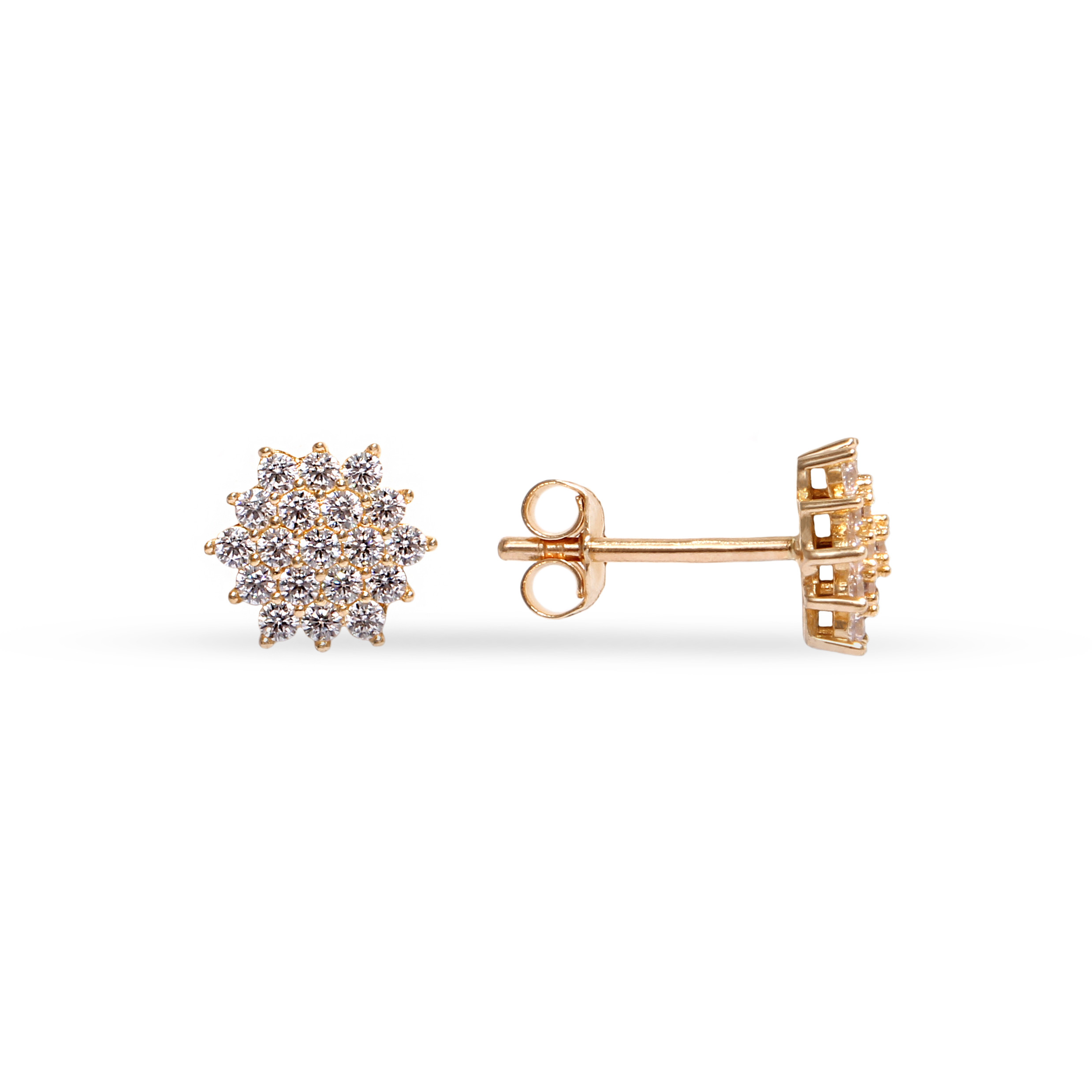 Eye-catching cluster stud earrings, set with a bunch of dazzling cubic zirconia.