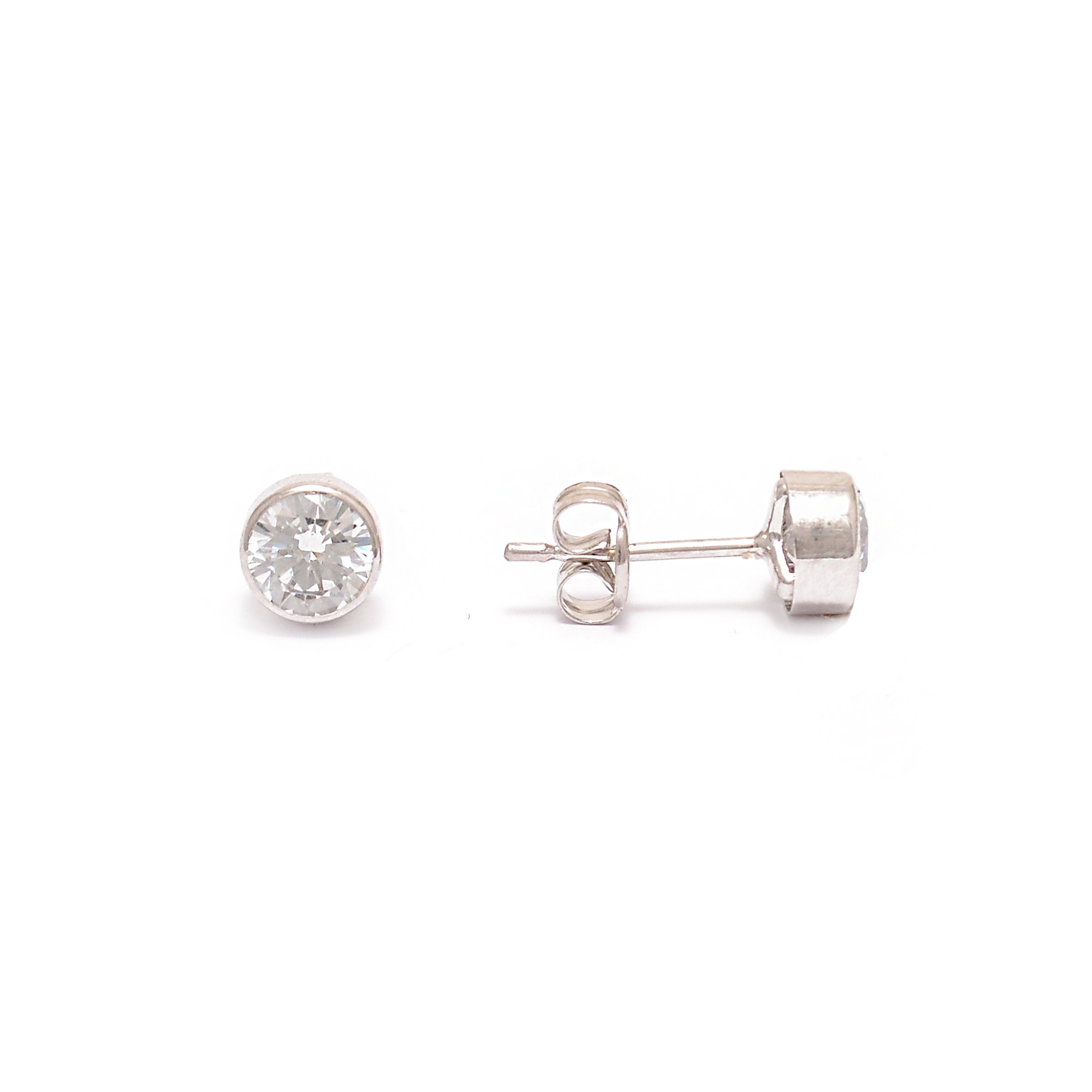 White gold stud earrings with cubic zirconia.
