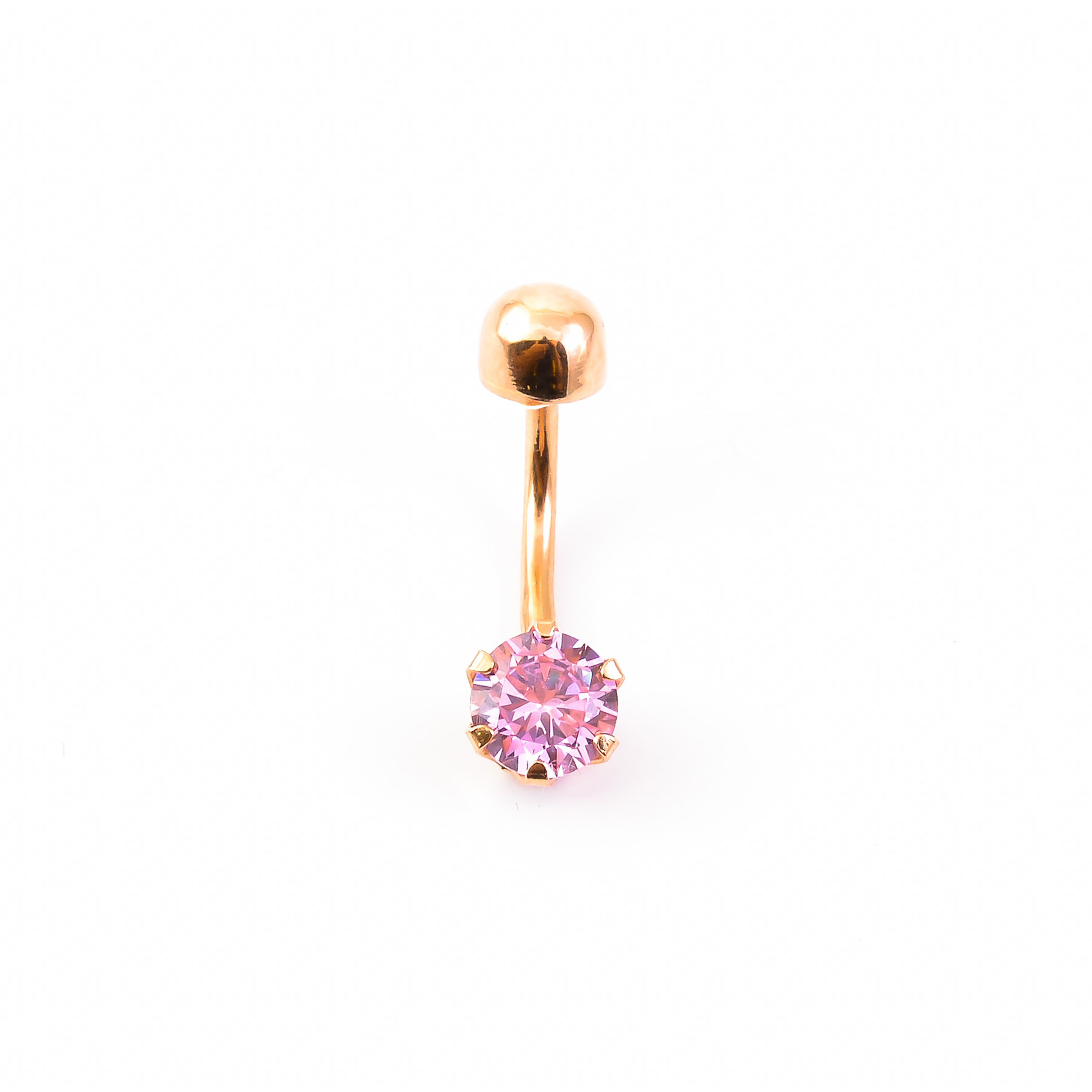 Klassikaline punasest kullast nabarõngas, roosa tsirkooniga nagakinnituses