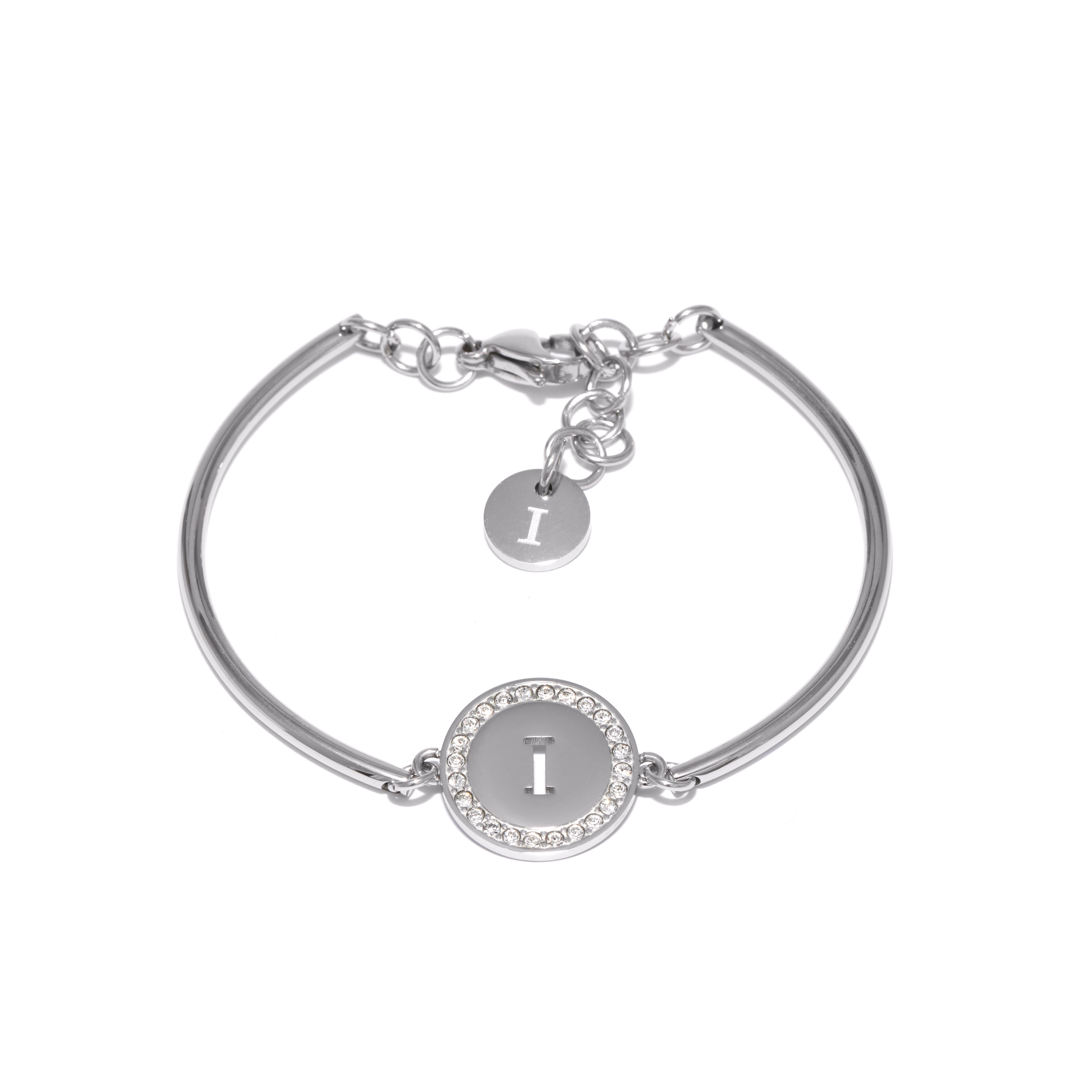 Roostevabast terasest käevõru Swarovski kristallidega “I”