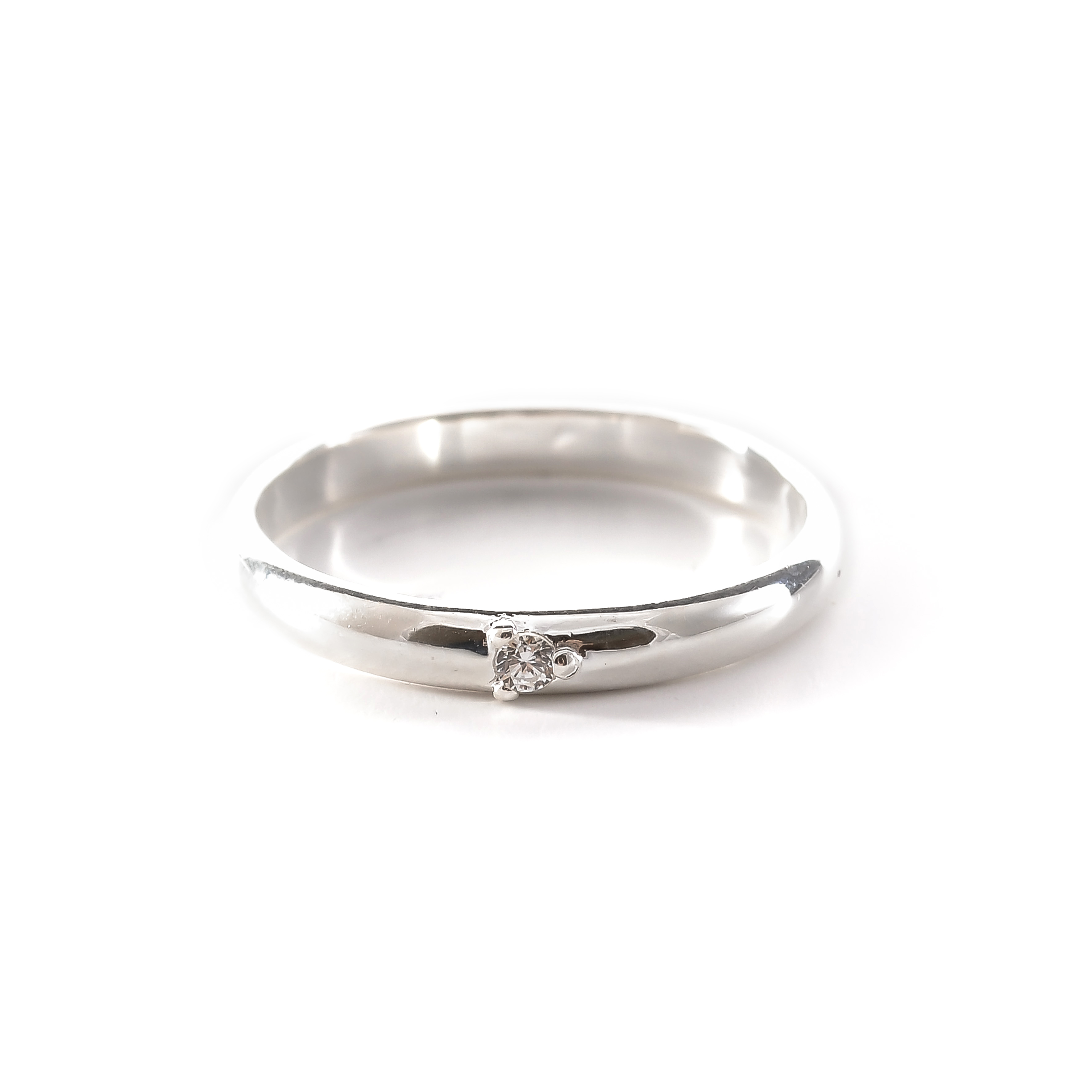 Sleek sterling silver ring showcasing restrained design. The ring is encrusted with petite cubic zirconia, complementing the ring with subtle sparkle.