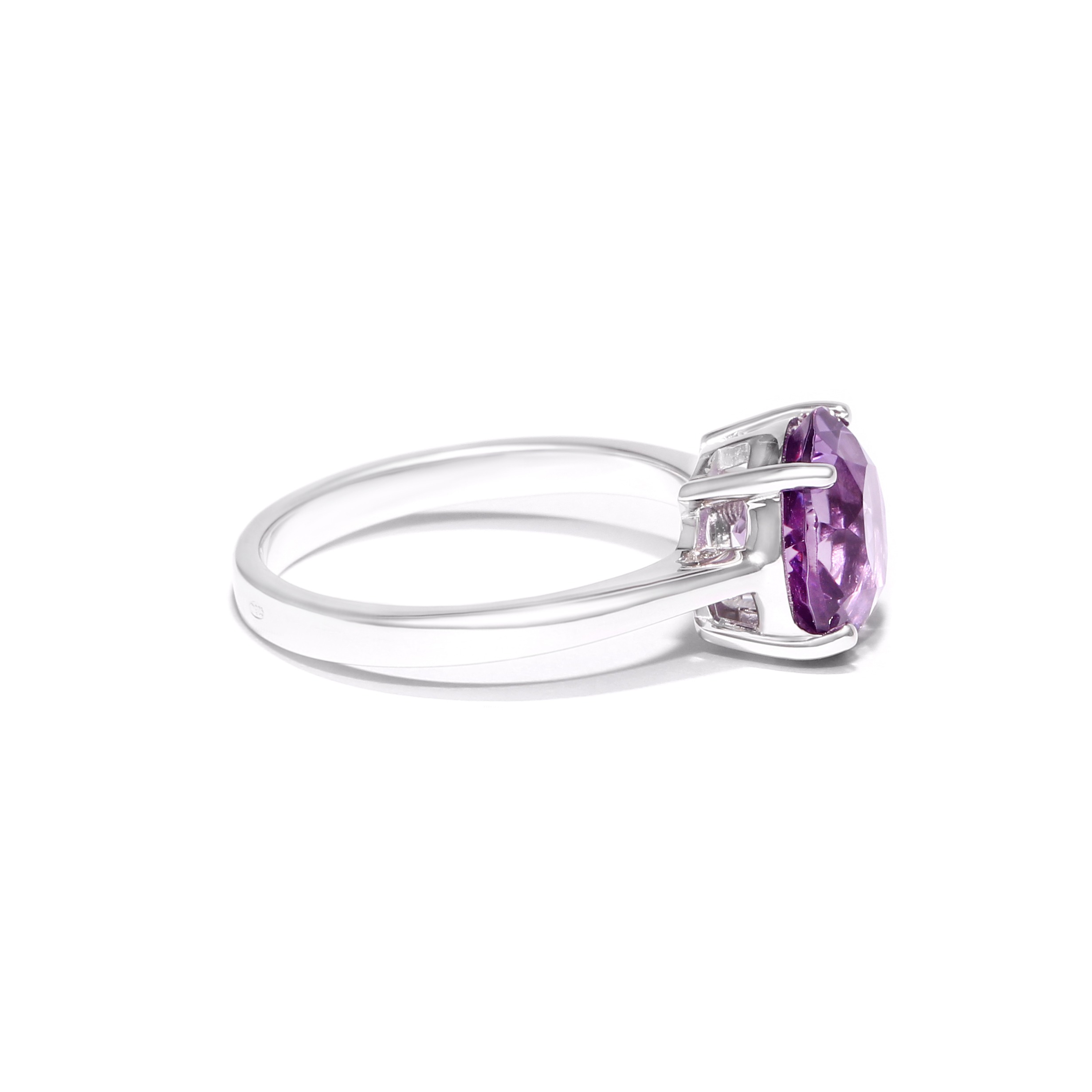 Sterling silver ring with rhodium plating and vivid purple amethyst.
