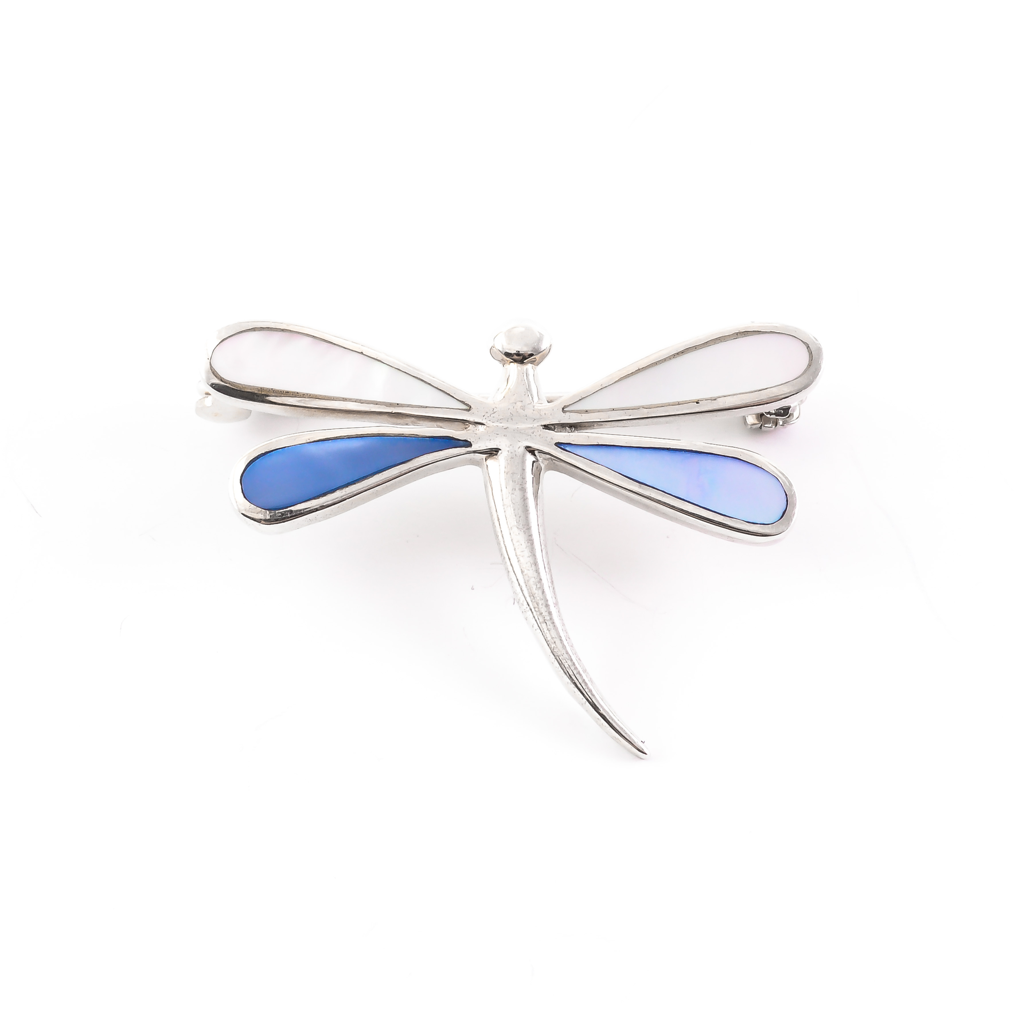 Очаровательная серебряная брошь Стрекоза, с покрытыми искусственным перламутром крыльями.