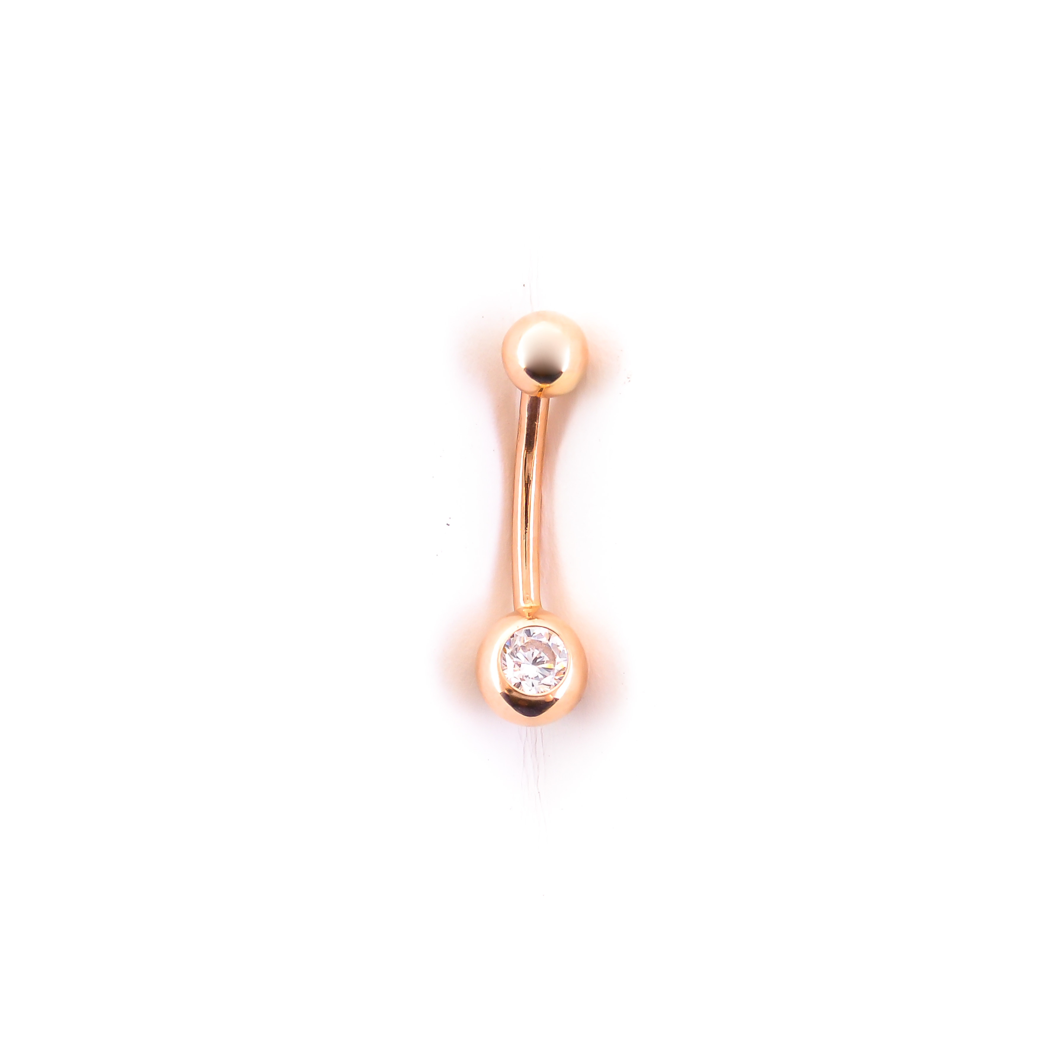 Аккуратный пирсинг в пупок из красного золота с белым цирконом в ободковой закрепке.