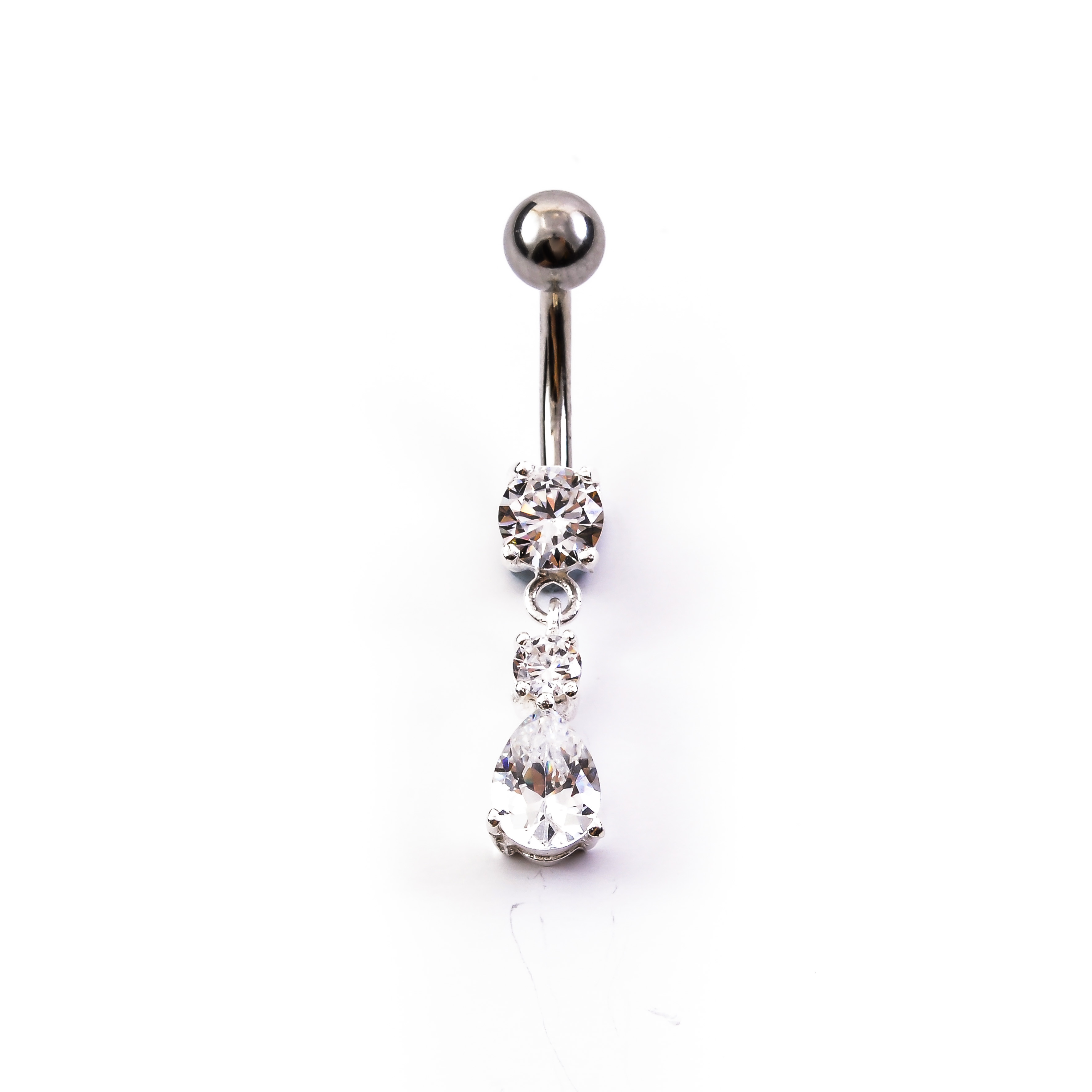 Пирсинг для пупка с подвеской, инкрустированный сверкающими цирконами.