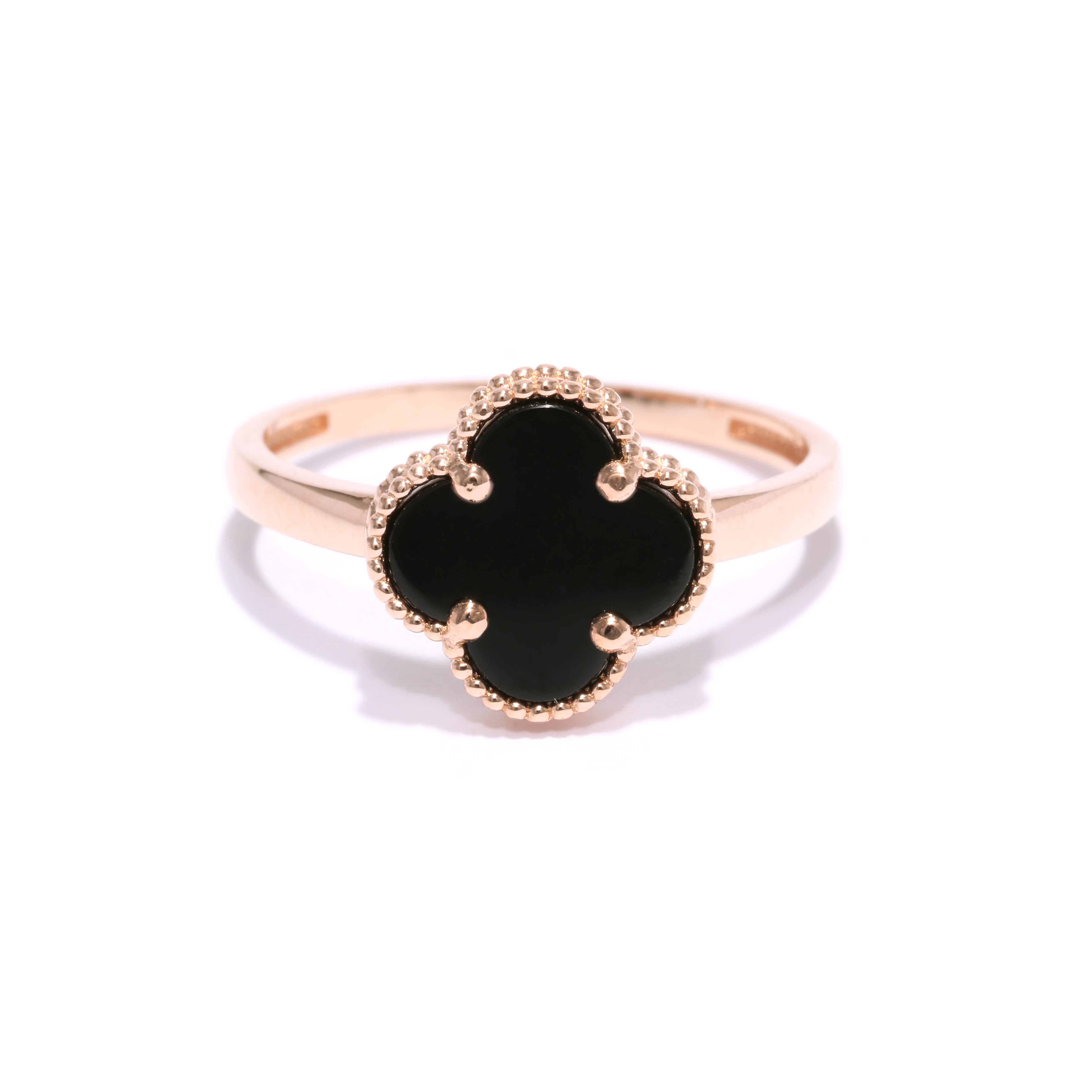 Zelta četrlapu āboliņa gredzens ar halcedonu