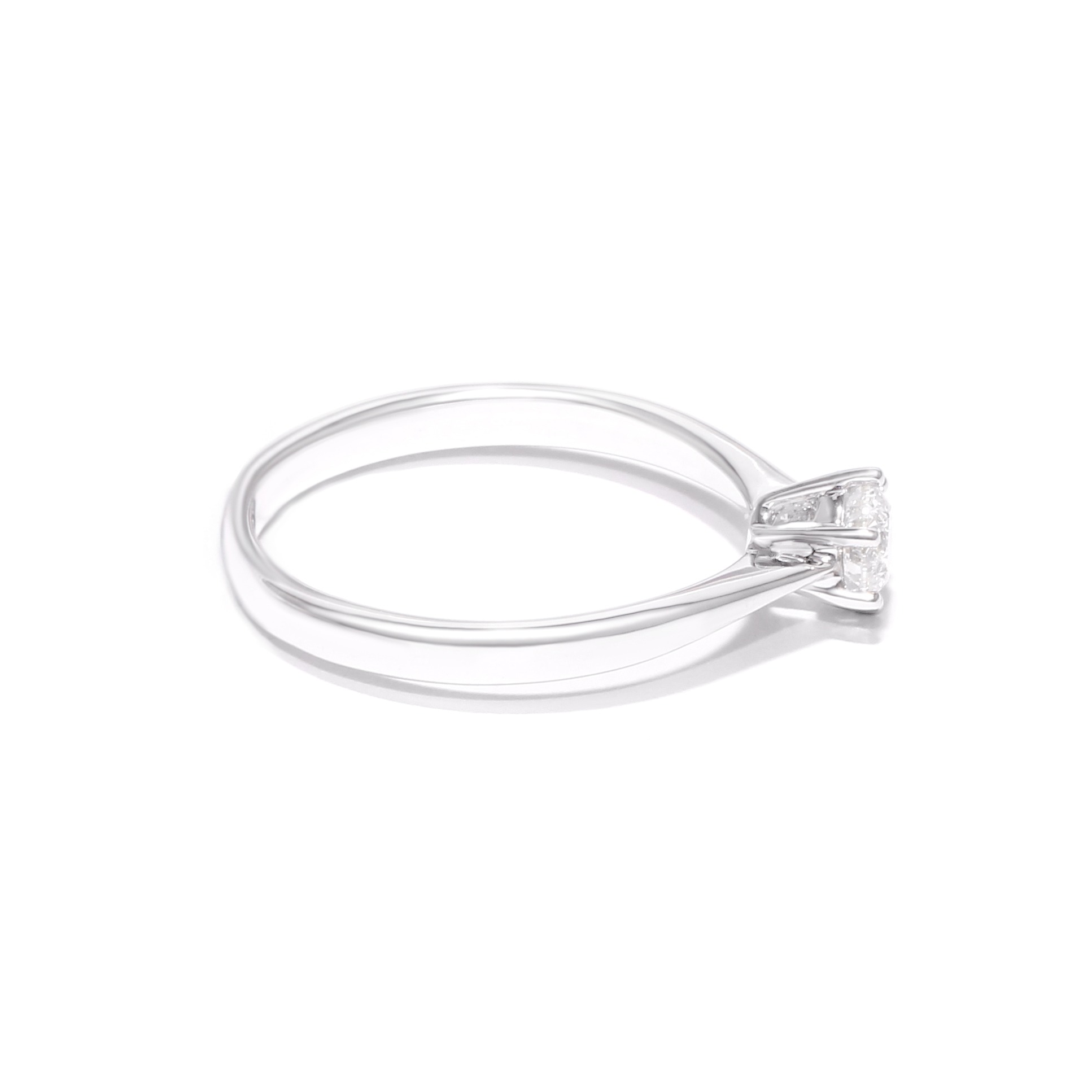 Klasiskais "Solitaire" baltā zelta gredzens. Apaļā slīpējuma briljants atrodas dakšveida stiprinājumā. Ideāls gredzens priekš saderināšanās. Izstrādājumam ir Latvijas Proves Biroja kvalitātes apliecība.