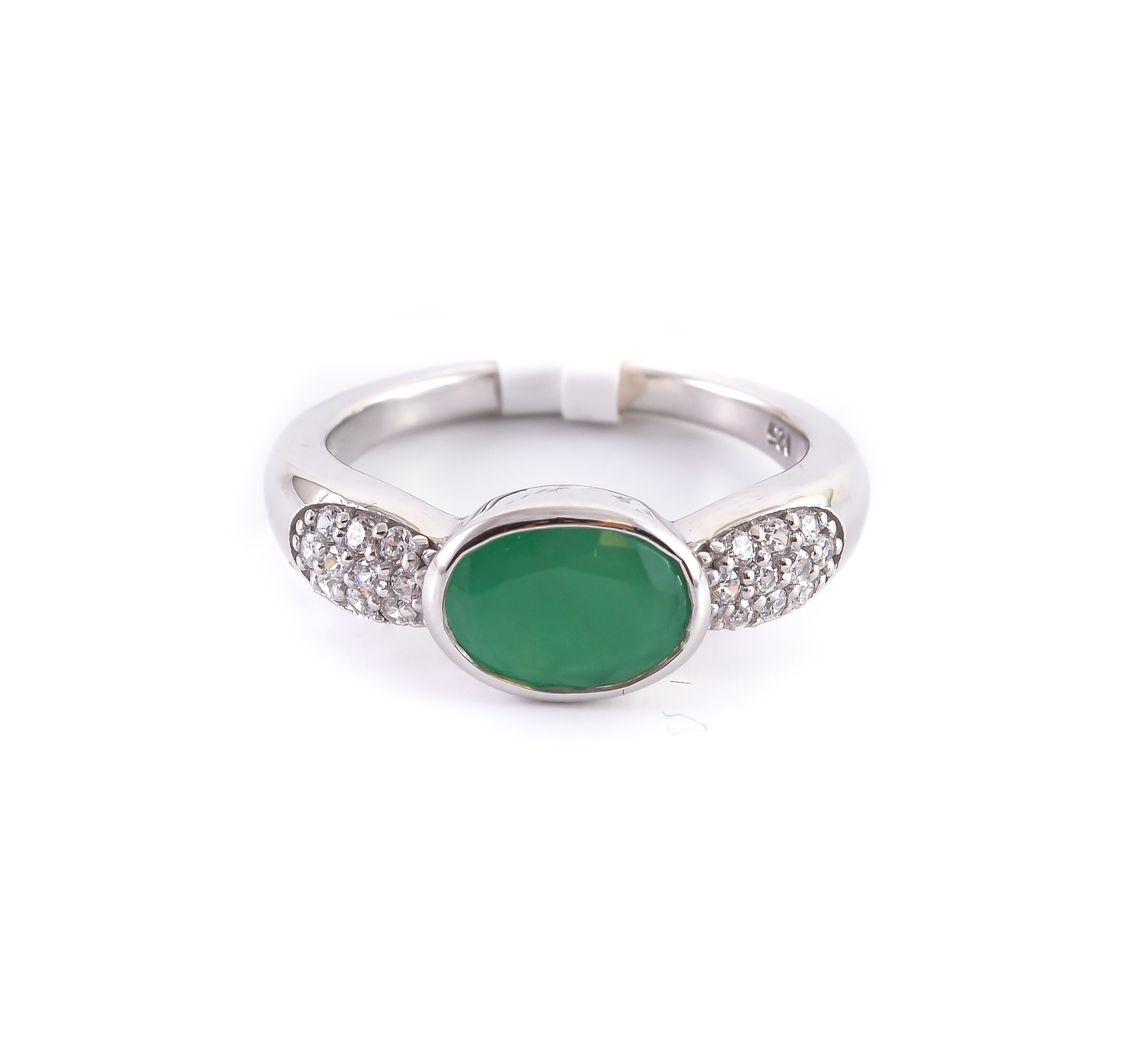 Аккуратное и нежное серебряное кольцо с изумрудом. Камень подчеркнут ободком, инкрустированным цирконами в установке паве. Носите это изделие комплектом для более формального образа. Изделие имеет сертификат качества Латвийской Пробирной Инспекции.