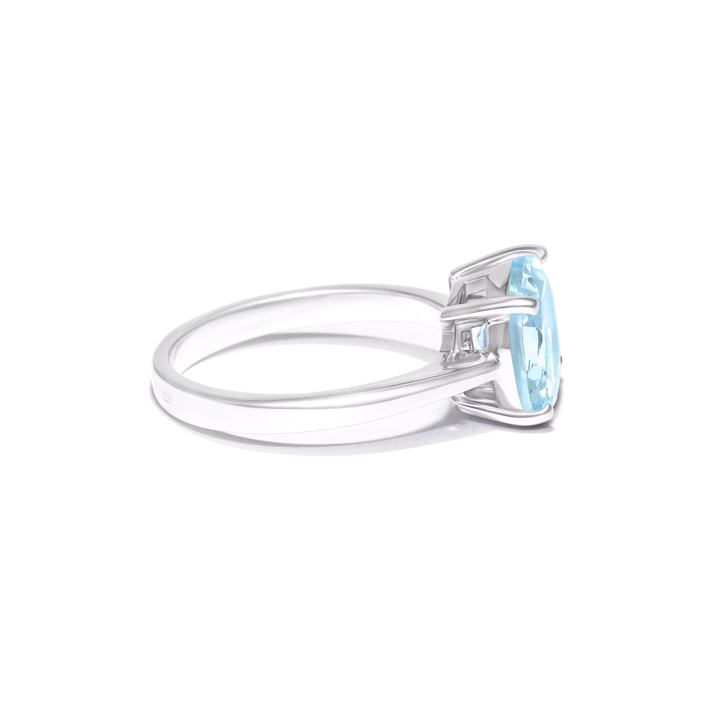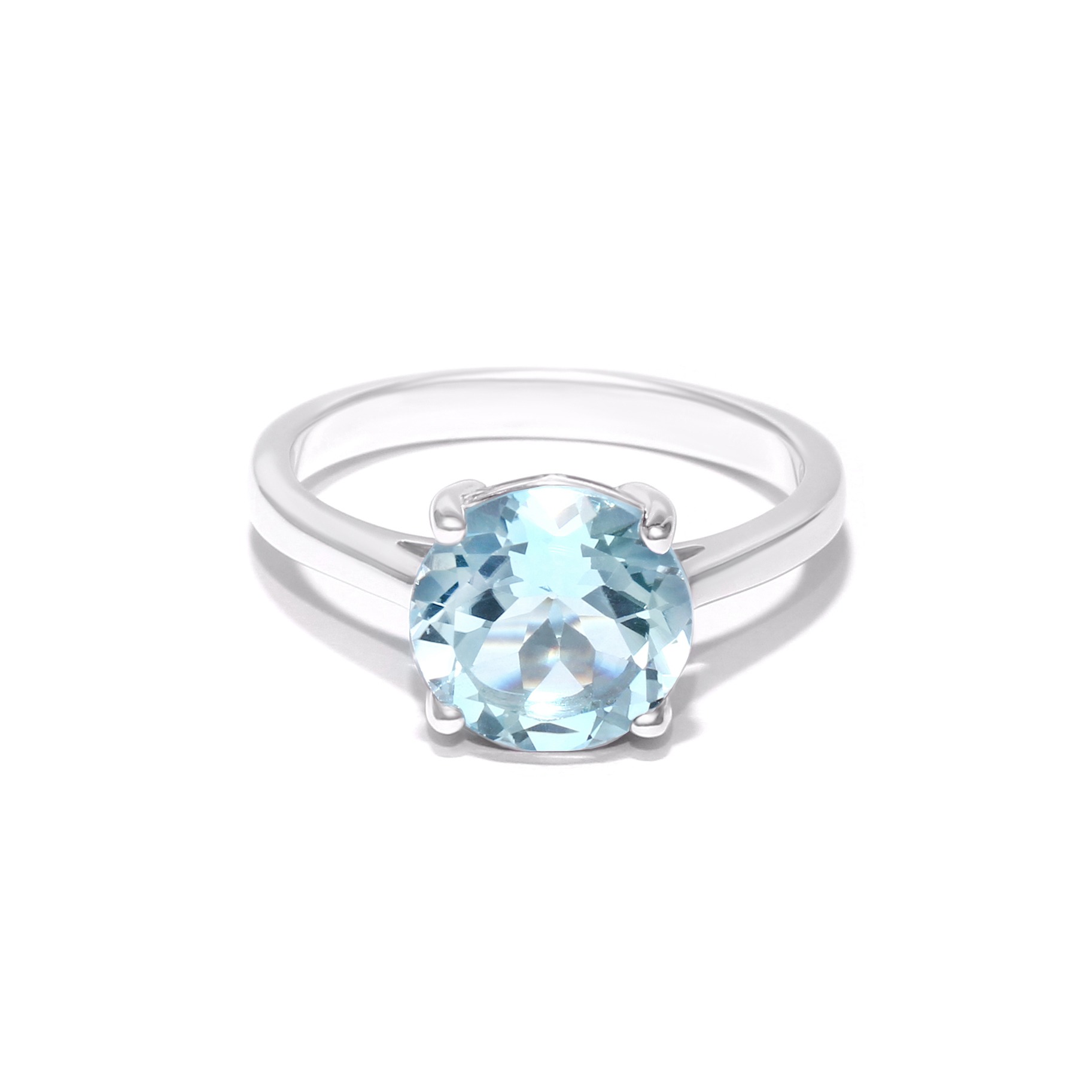 Sterling silver ring with rhodium plating and expressive sky blue topaz.