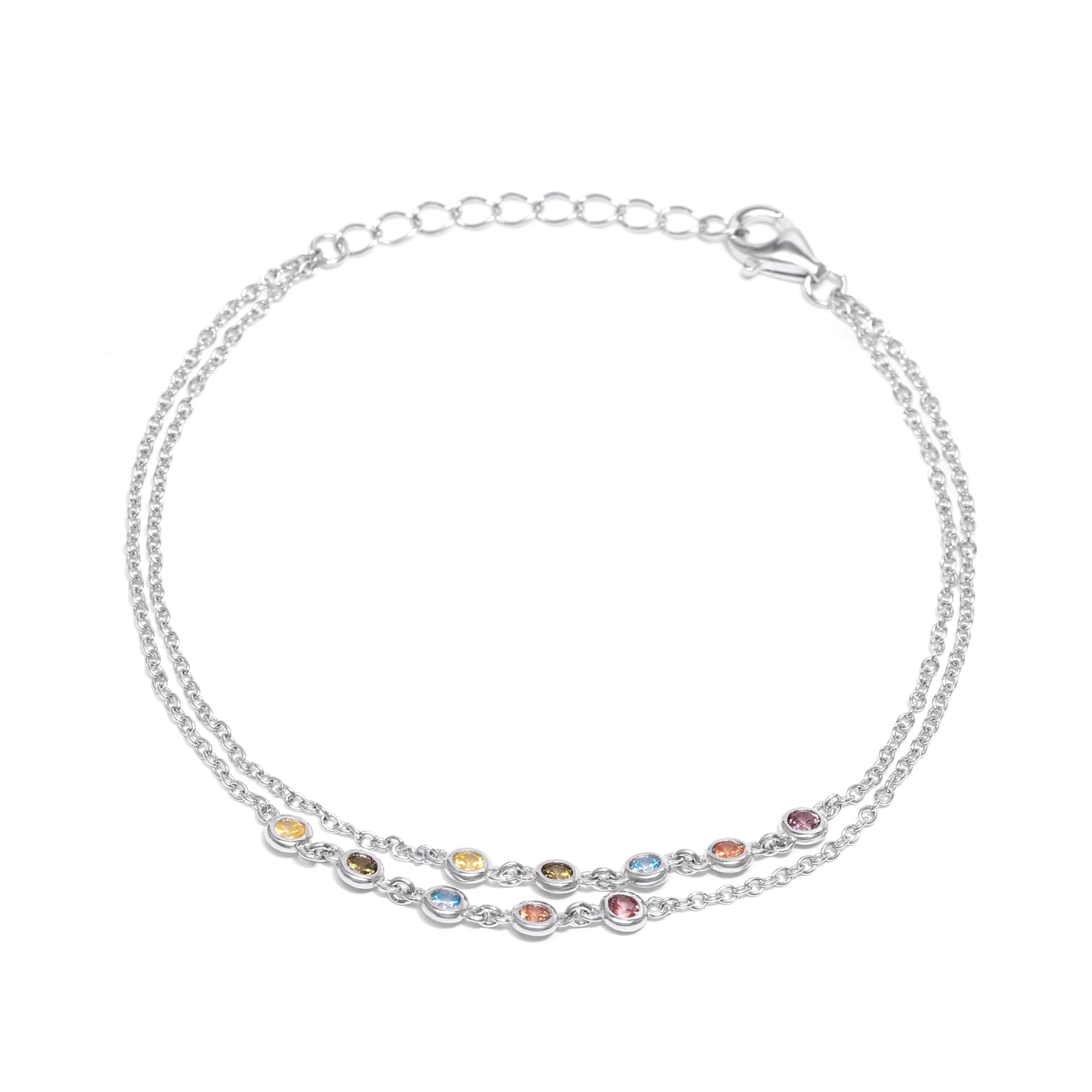 Silver bracelet with multicolored cubic zirconia