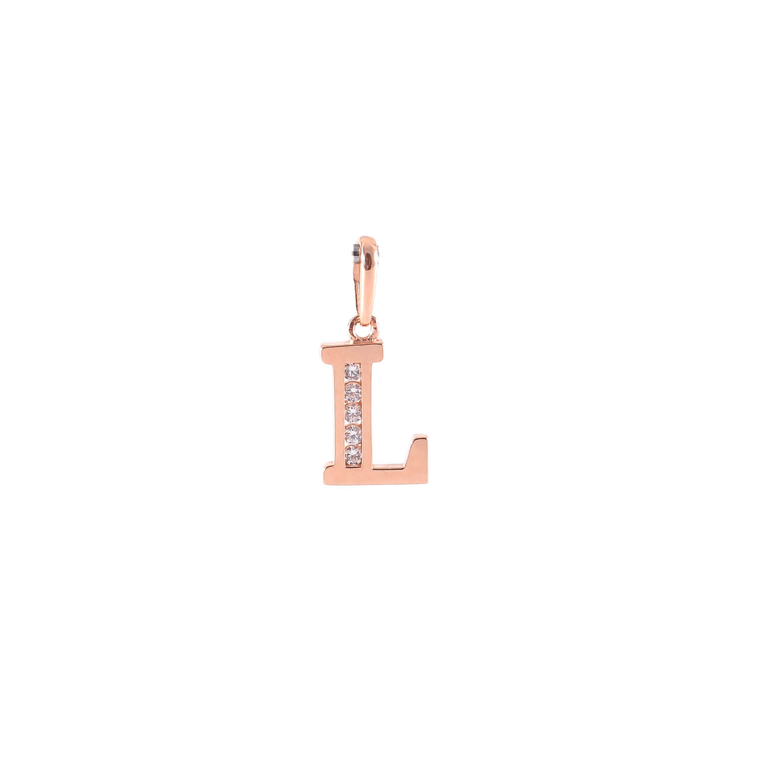 "L", inkrustuotas įrėmintais cirkoniais kurie suteikia prabangų blizgesį.