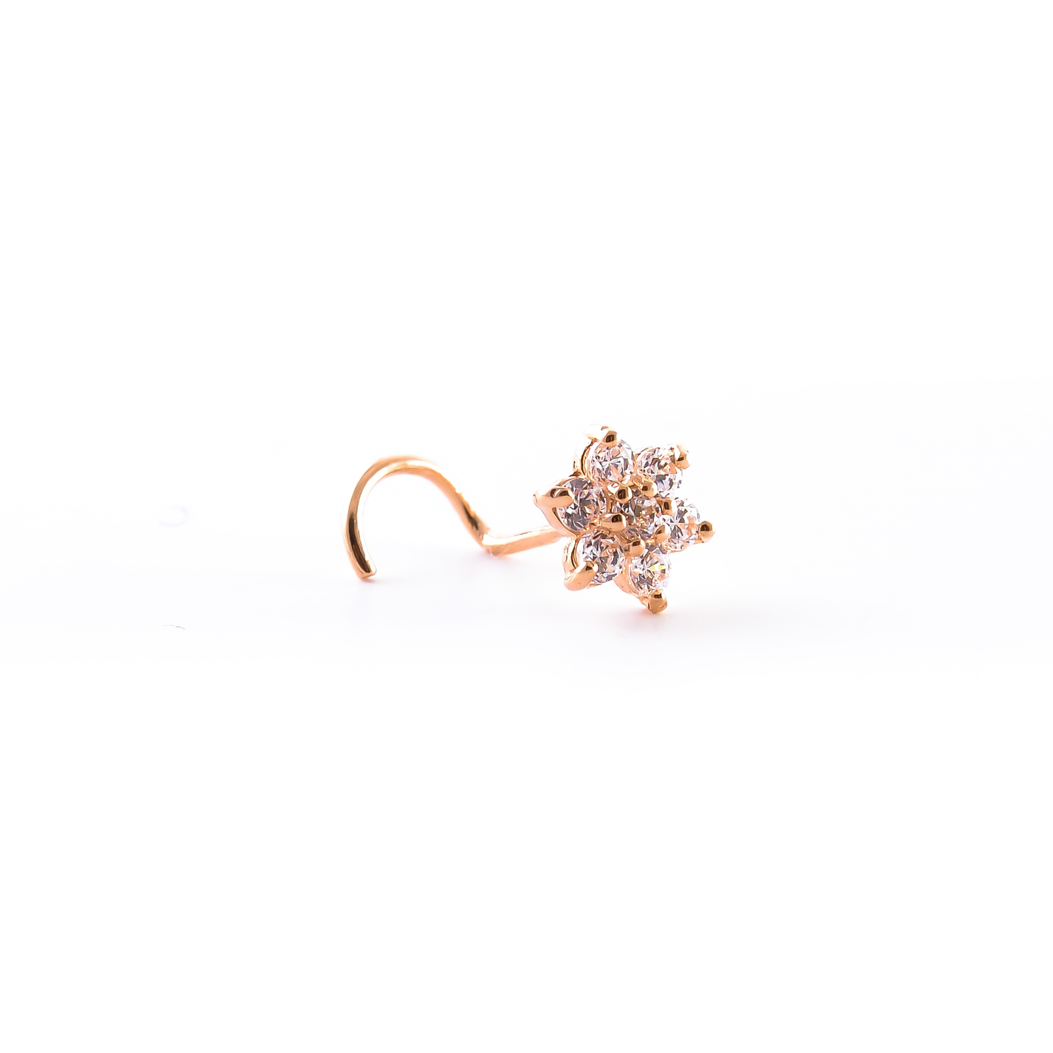 Auskaras į nosį, pagamintas iš aukso, su cirkonais, formuojančiais gėlelę