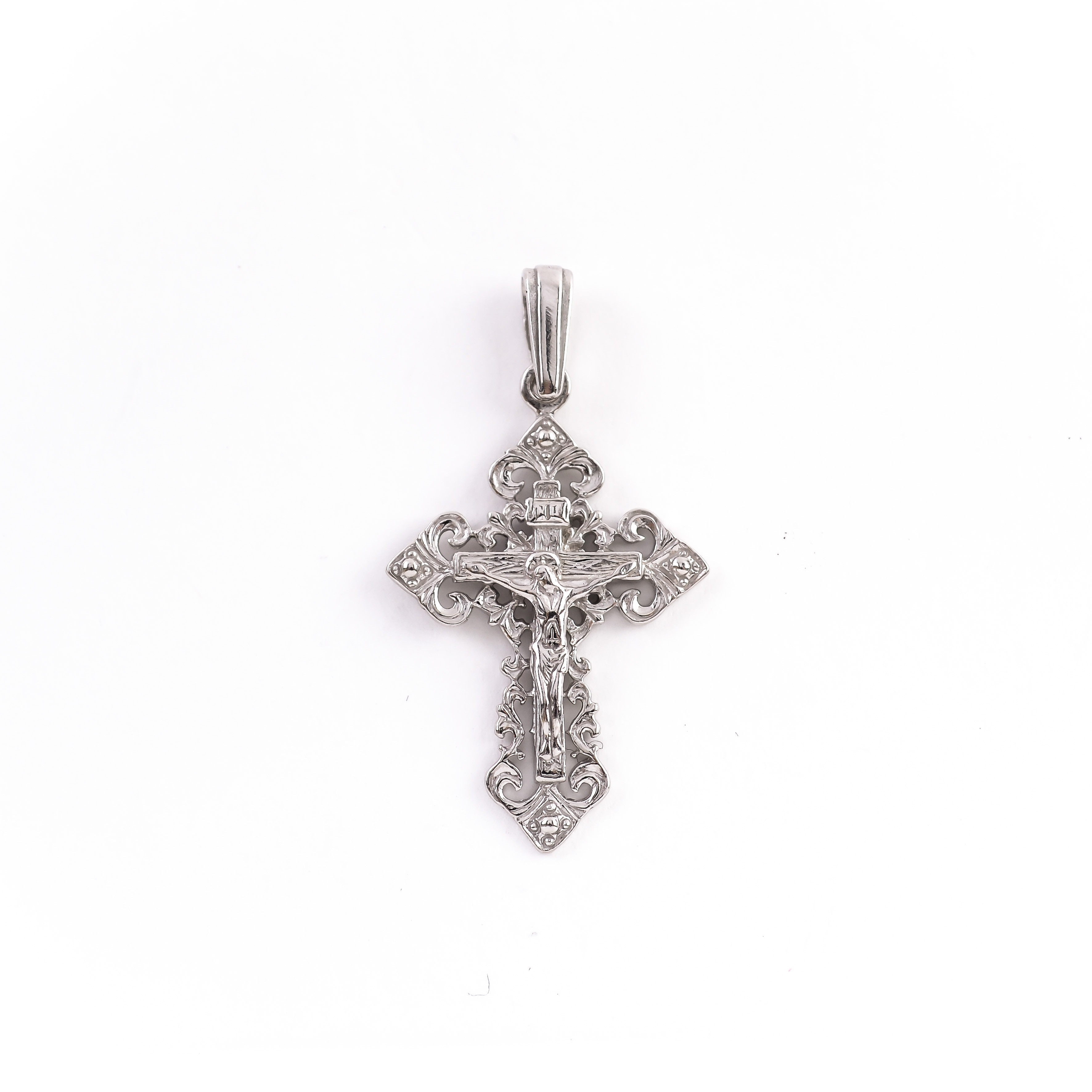 Серебряный православный крестик с надписью "Спаси и Сохрани" на обороте.