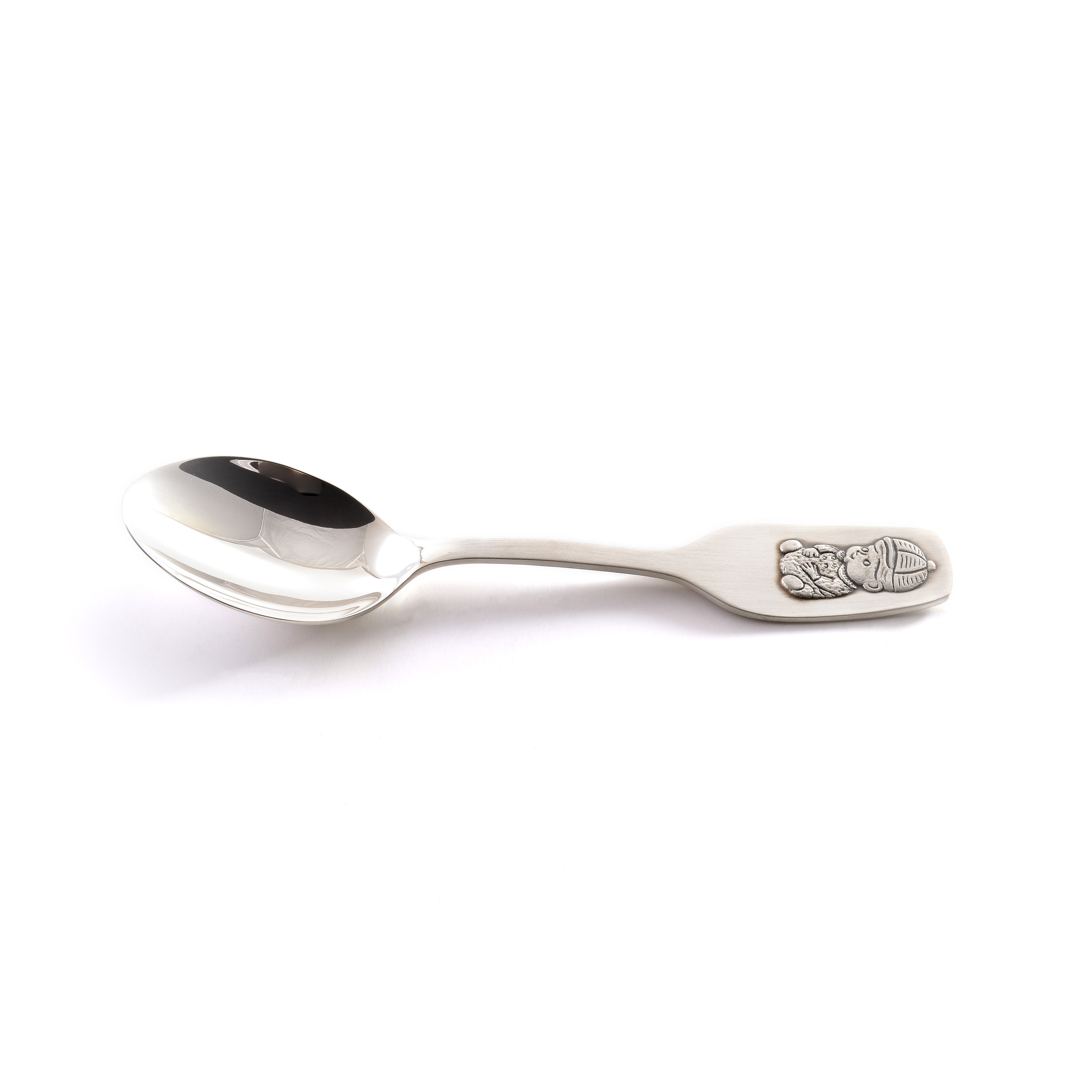 Серебряная ложка c изображением мальчика.