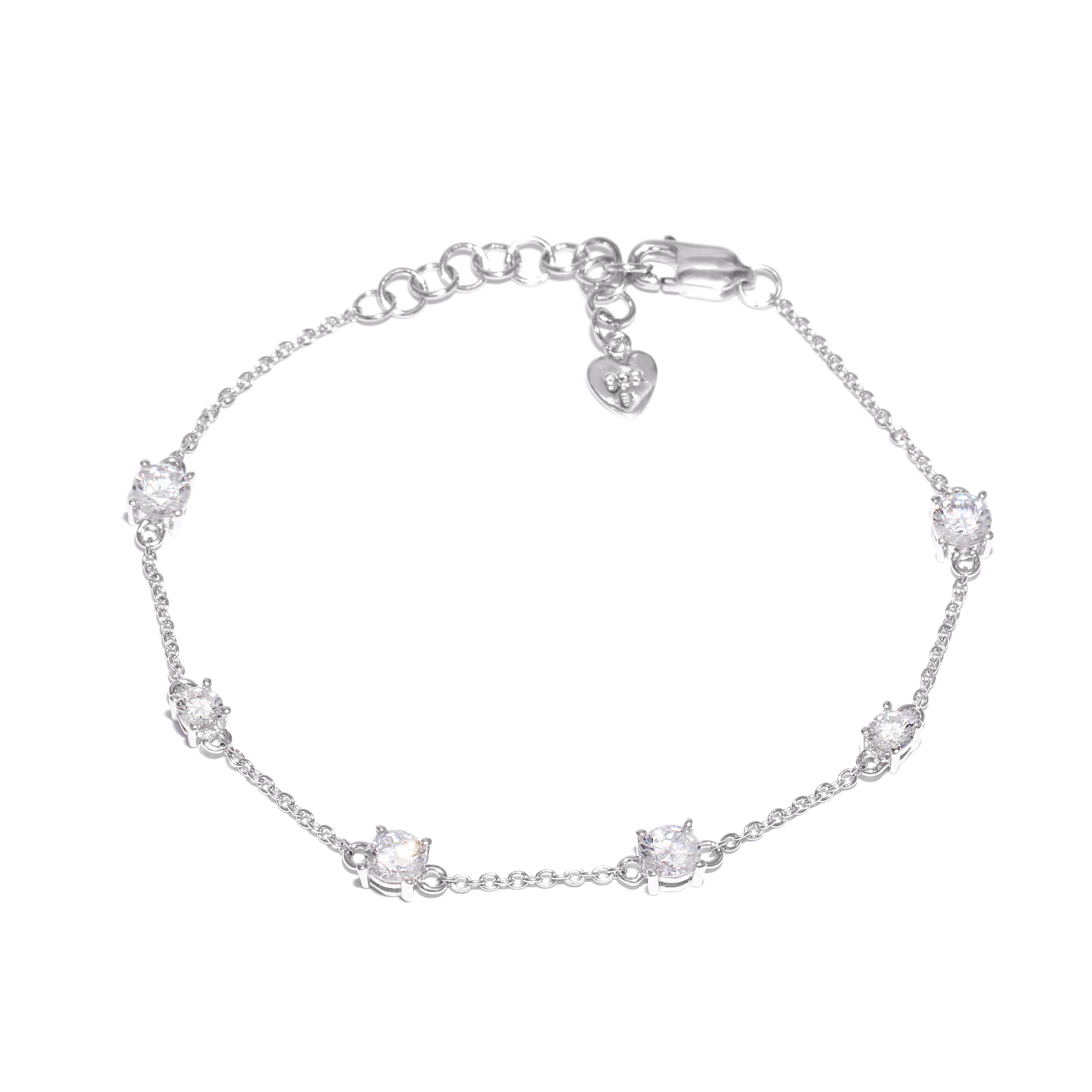 Silver bracelet with adjustable length, adorned with several colourless cubic zirconia settings.