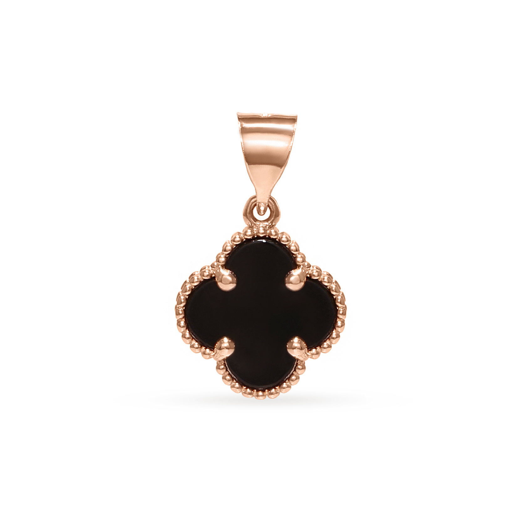 Red gold pendant with black chalcedony. The four-leaf clover symbolizes luck and prosperity.