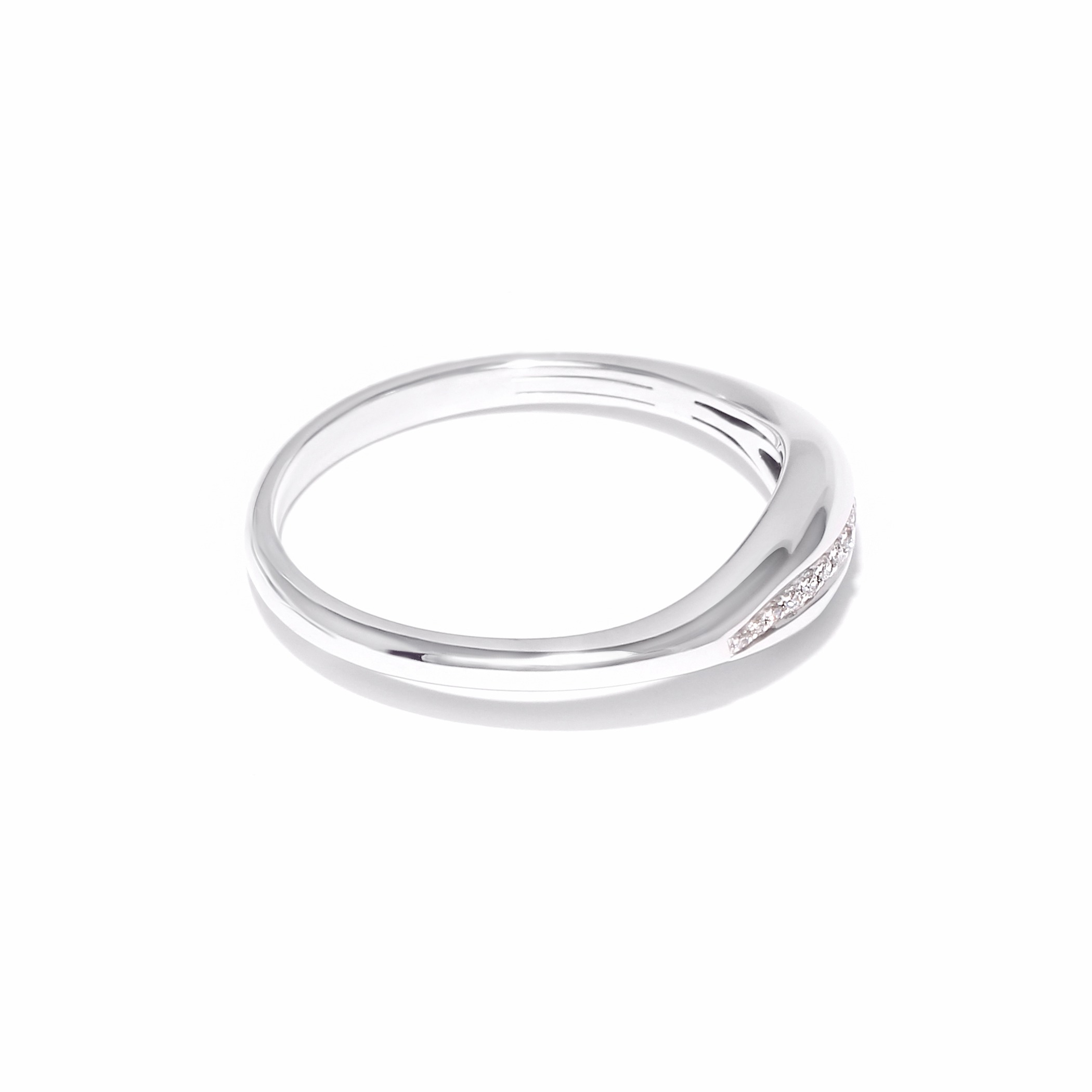 White gold ring with a gentle wave-shaped contour, complemented by a sparkling row of diamonds.