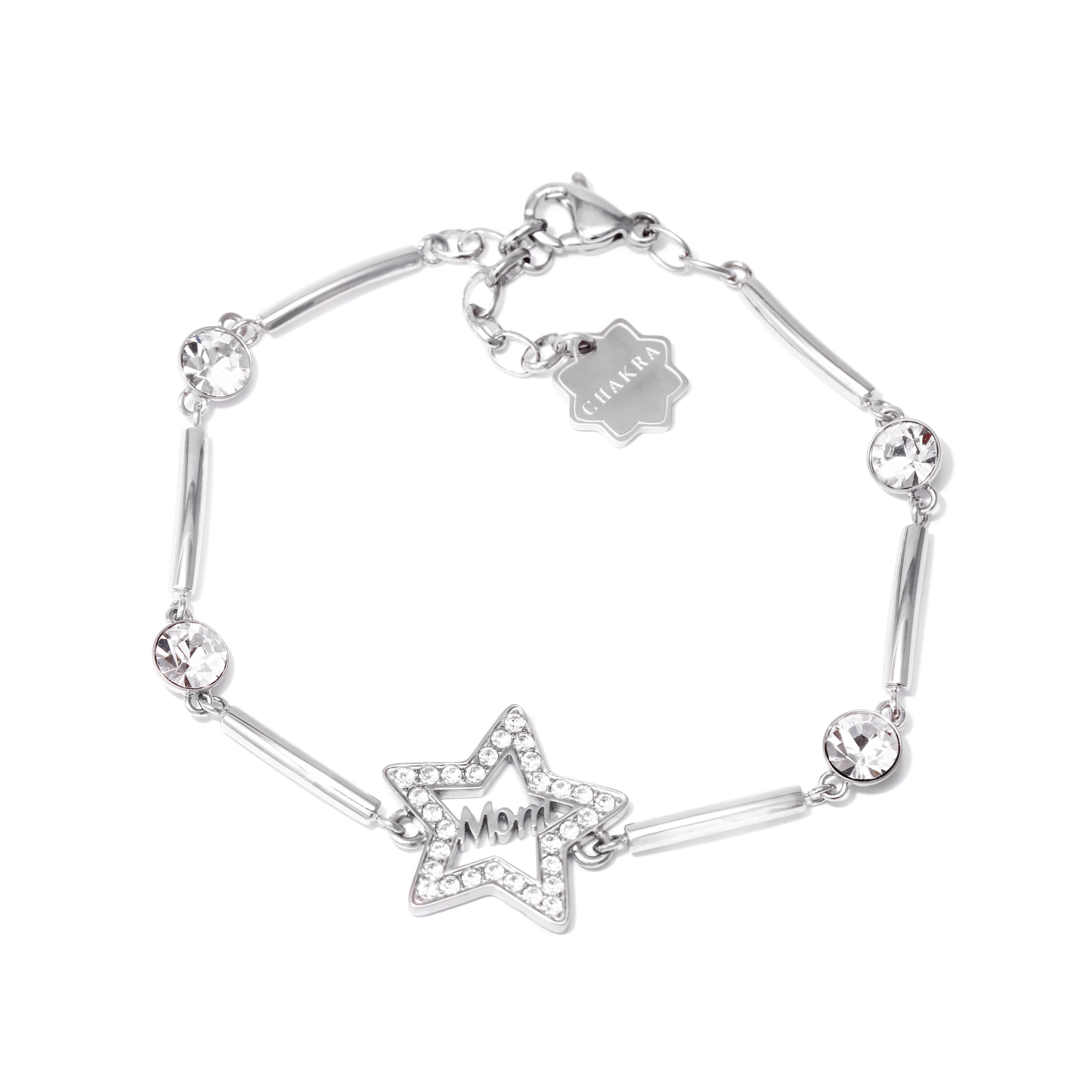 Stainless steel bracelet with crystals "Mom"