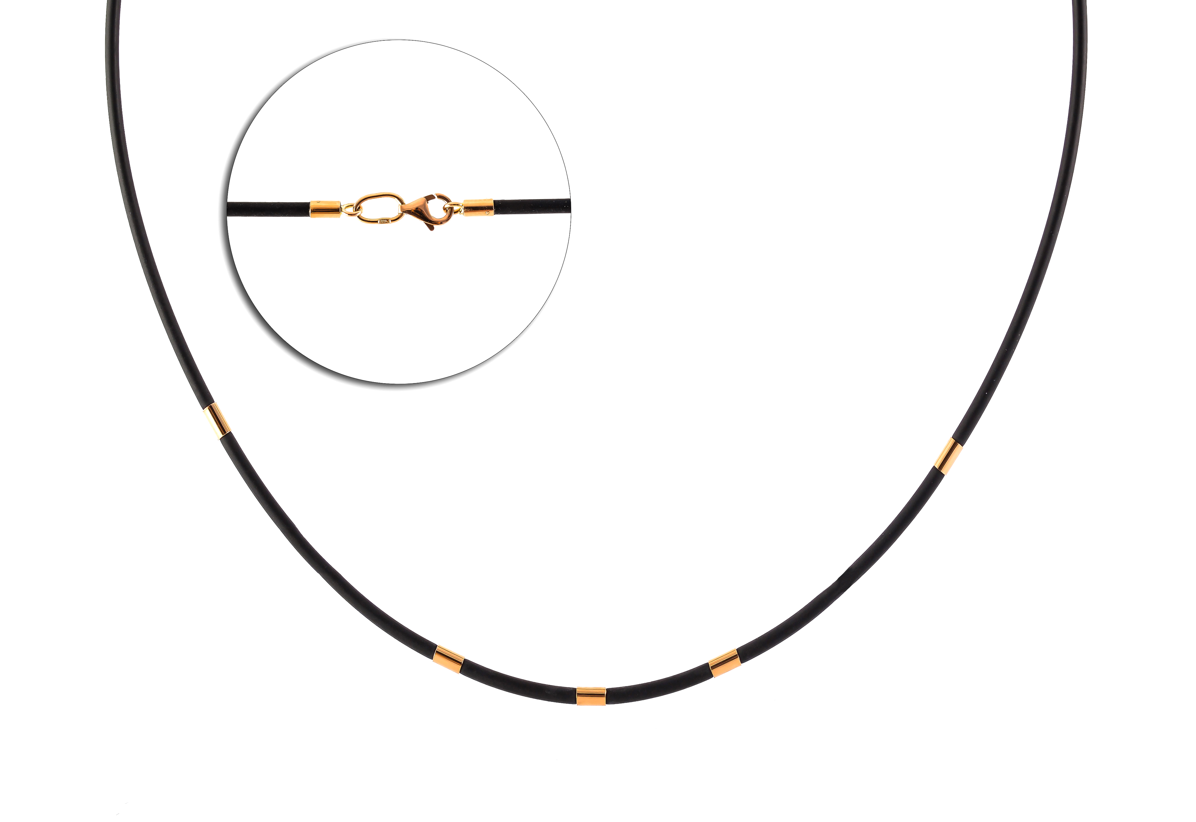 Black rubber cord with gold inserts is a fashionable and original accessory which is perfectly combined with pendants made in different styles.
